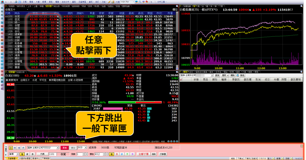 下單時,點擊上方畫面股票的價格左鍵兩下